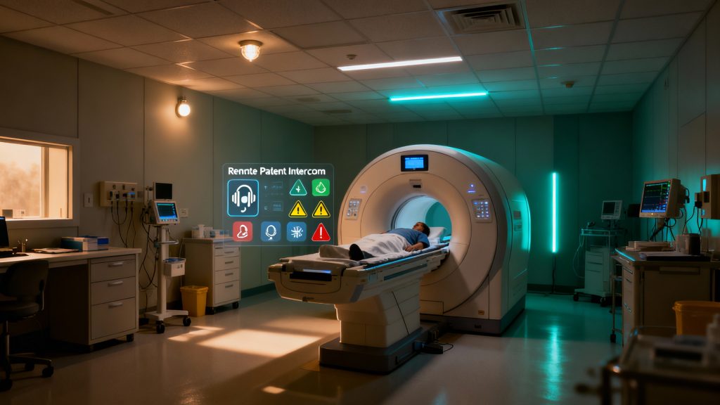 - Remotely monitors hazardous MRI room.